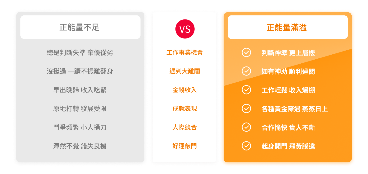 當你透過我們有效的方法和步驟,與宇宙天地產生連結,能確實調理、平衡你的身心靈正負能量,吸引力法則才會開始啟動。若只做吸引力法則,可能會因遲遲不成功導致內心錯亂,或雖然吸引到大量好運,卻因能量場不匹配,沖走你原來的正能量場,若你負荷不了,反而成了災難的開始,例如:財務出現漏洞、病痛纏身、家庭失和等問題。