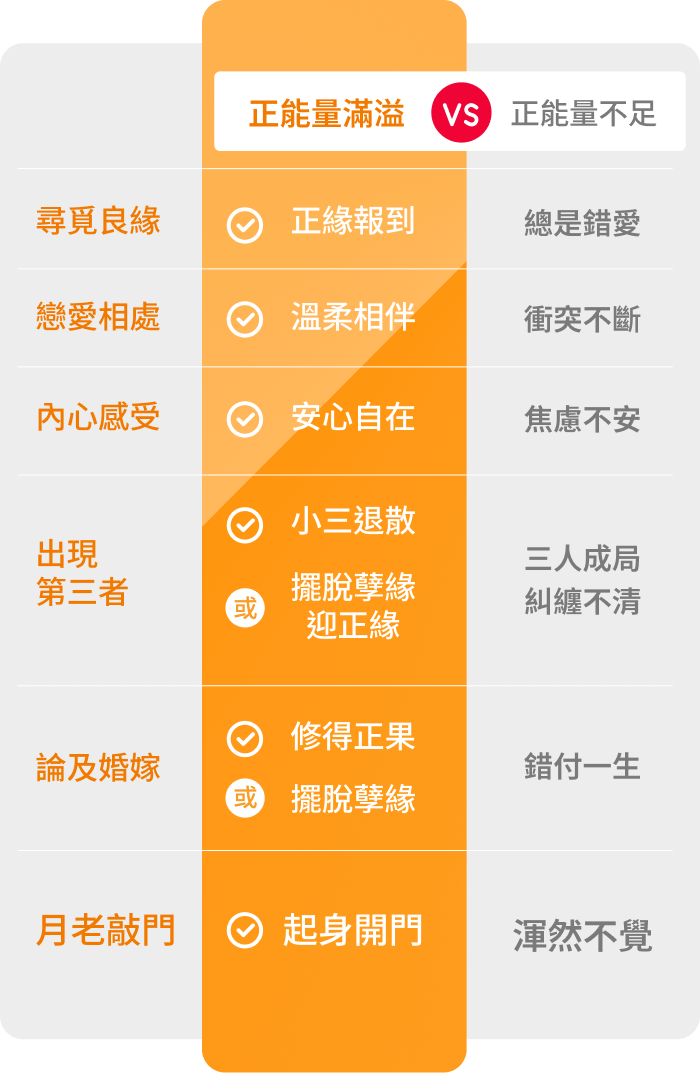 若你和伴侶是正緣,當你的身心靈正負能量場達到平衡,第三者會自動離開,倘若你們之間非正緣則反之。